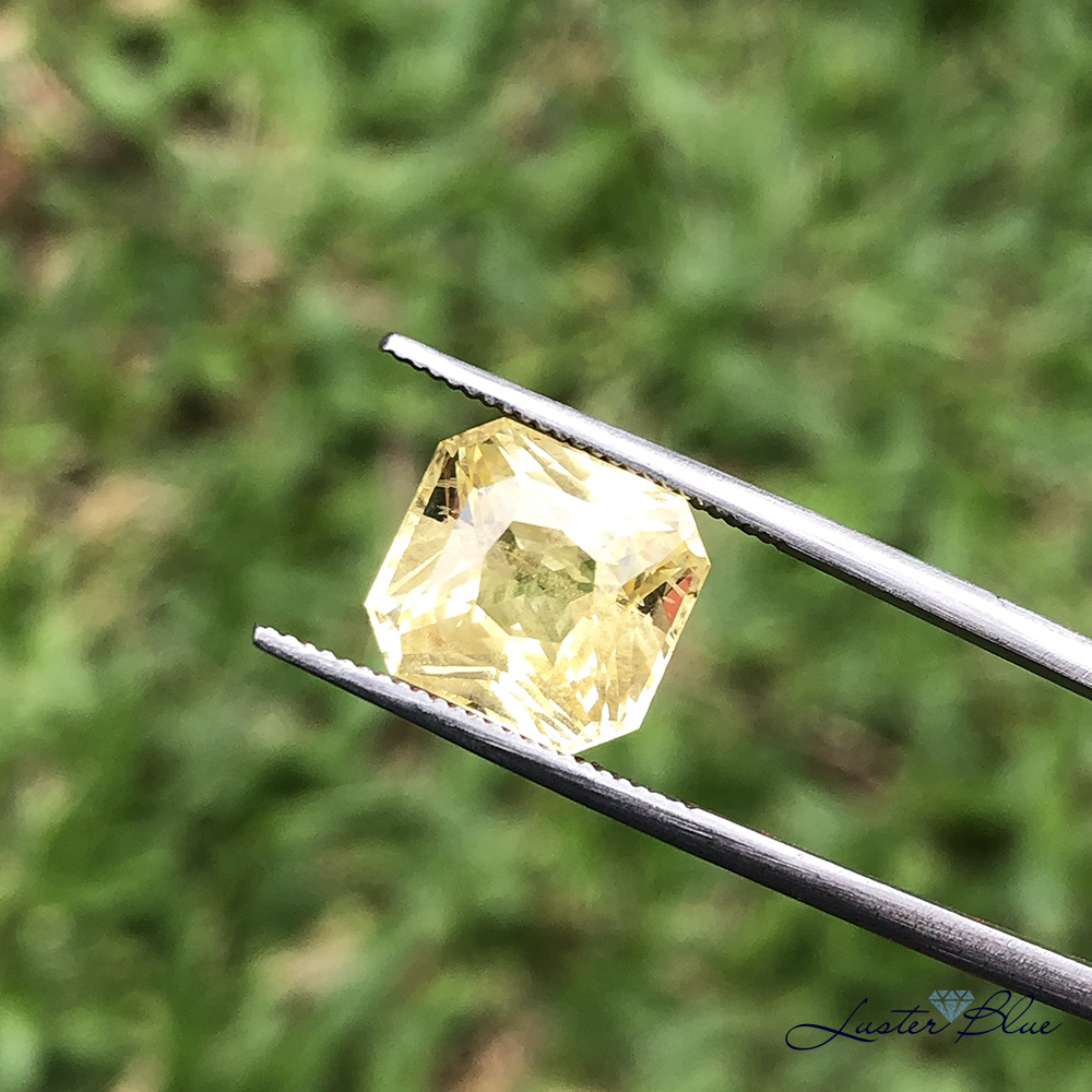 Natural Unheated Yellow Sapphire 5.17ct. This yellow sapphire has a good color and a luster. It has a feather inside and if you are looking for a natural unheated yellow sapphire for astrology purpose with a low budget, this is a good choice for you.