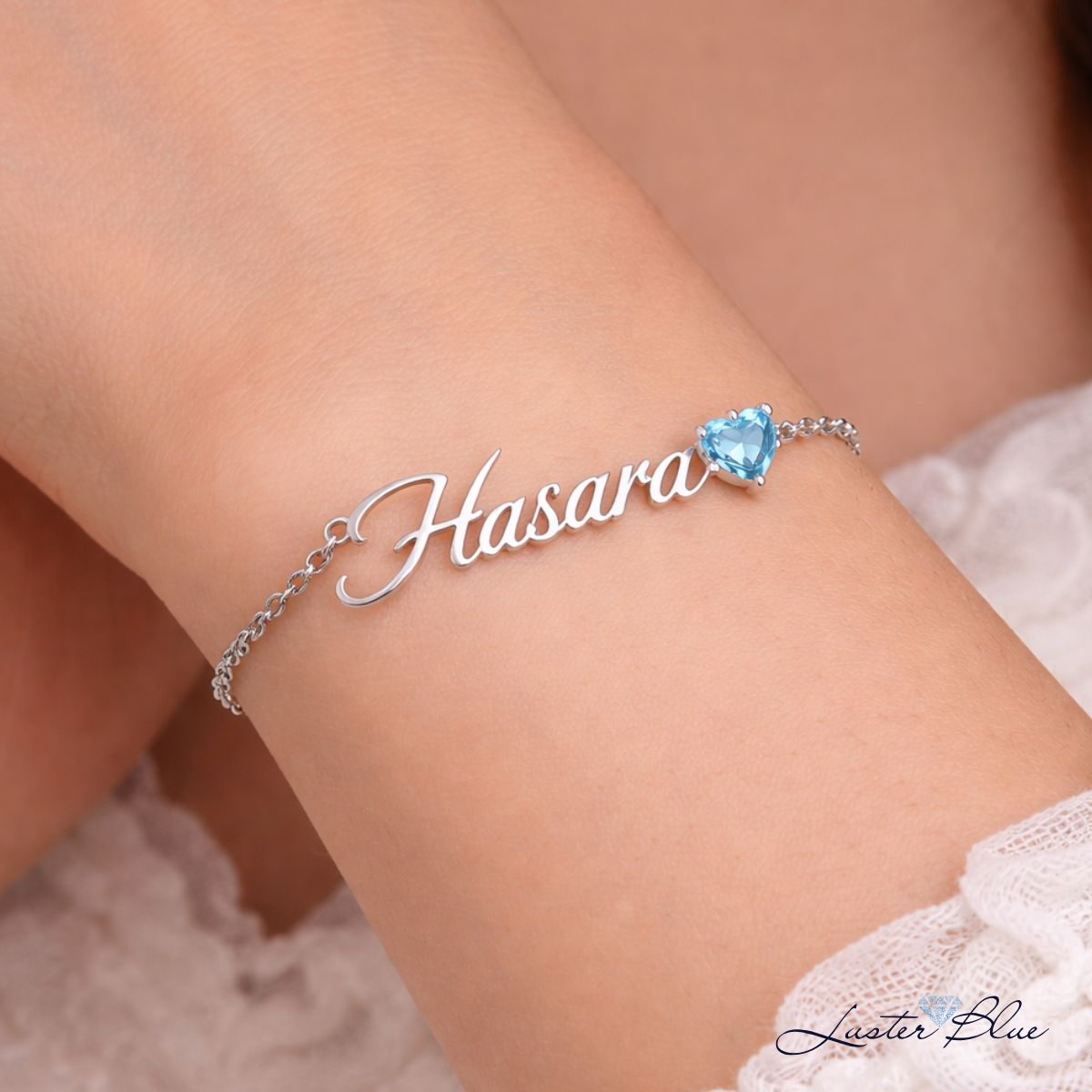 Personalized Name Bracelets with Heart Shape Birthstone – LBSB-517