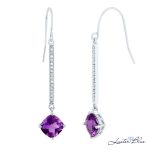 Sterling silver earrings with two 7 millimeter cushion shaped amethyst.