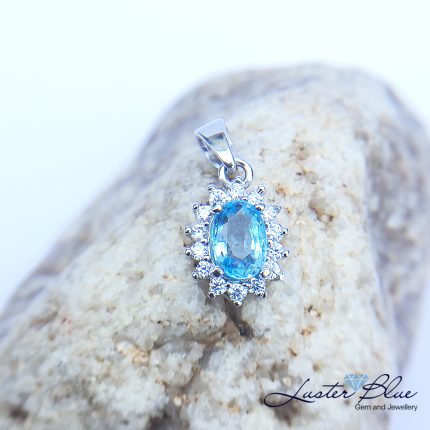 Blue Topaz Pear Halo Pendant – LBSP-501