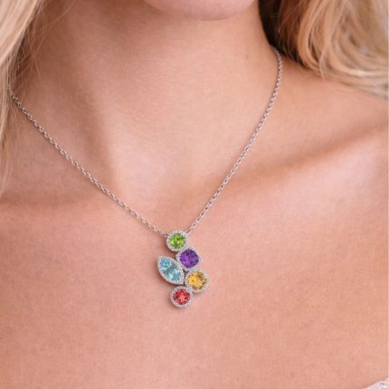 Multi-Coloured Gemstone Fancy Halo Pendant- LBSP-503