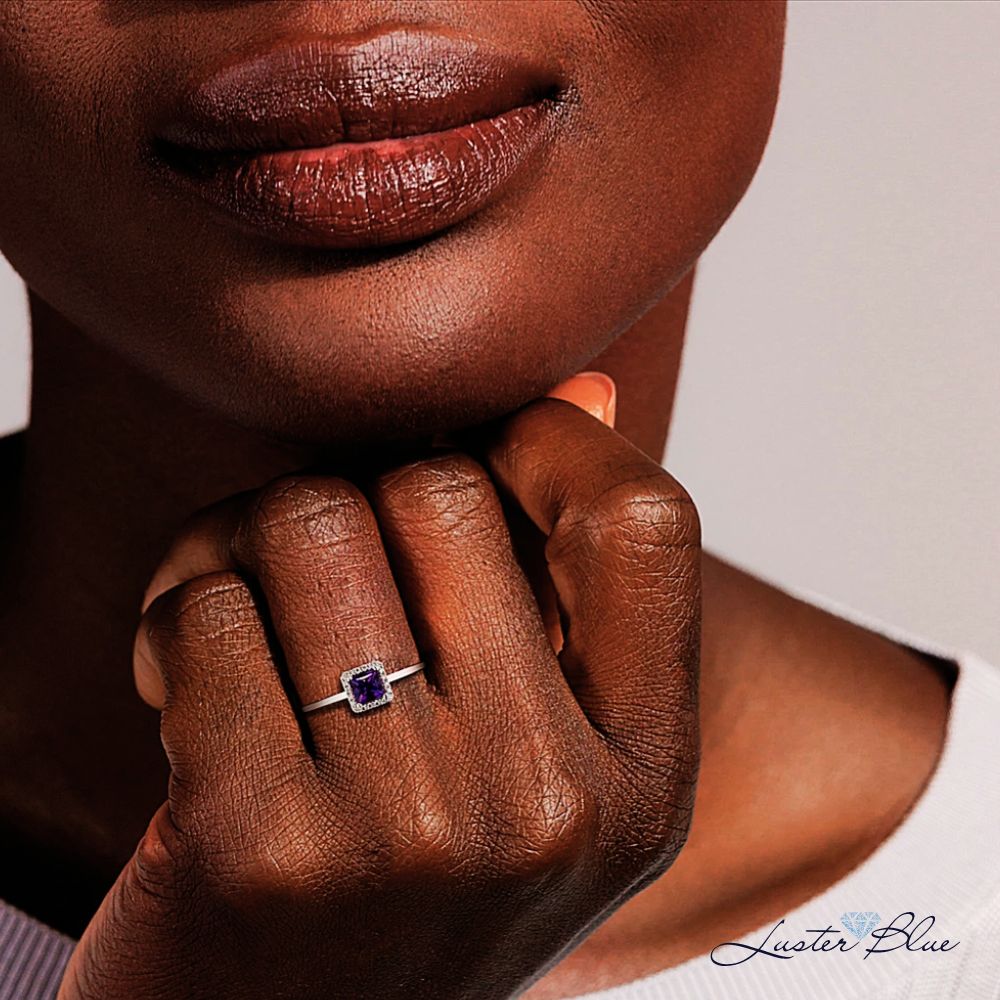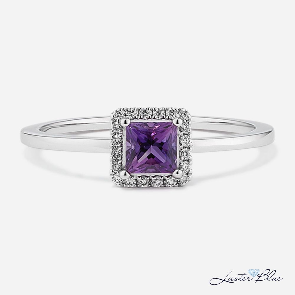 Make a splash with cool amethyst halo ring crafted of 925 sterling silver.