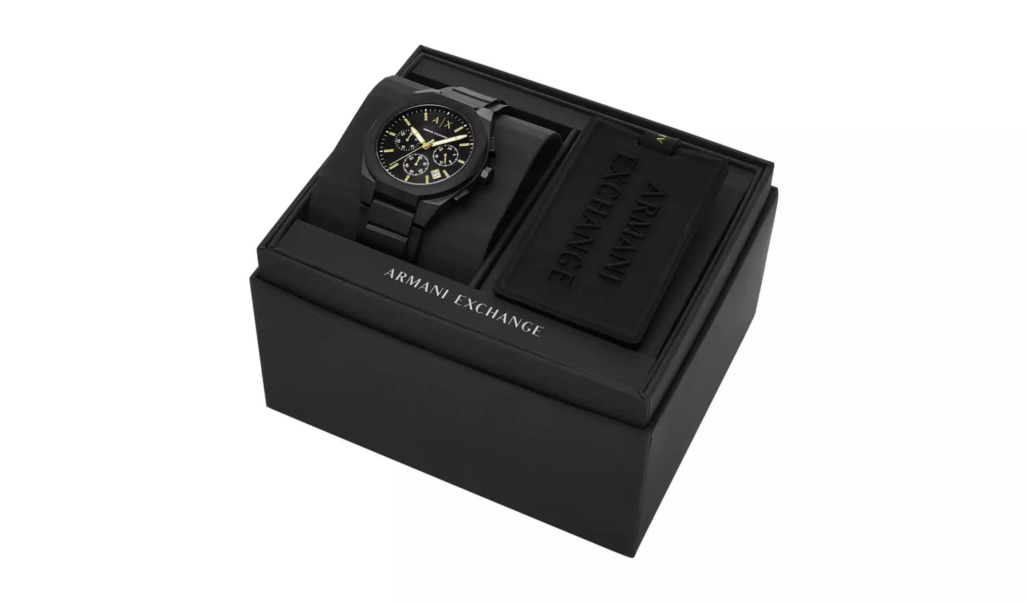 Armani Exchange Chronograph Black Silicone Watch Set