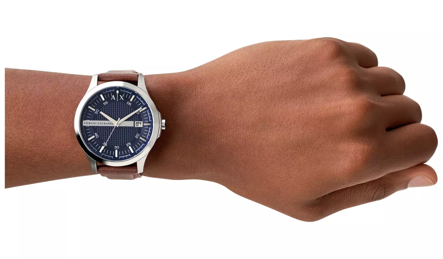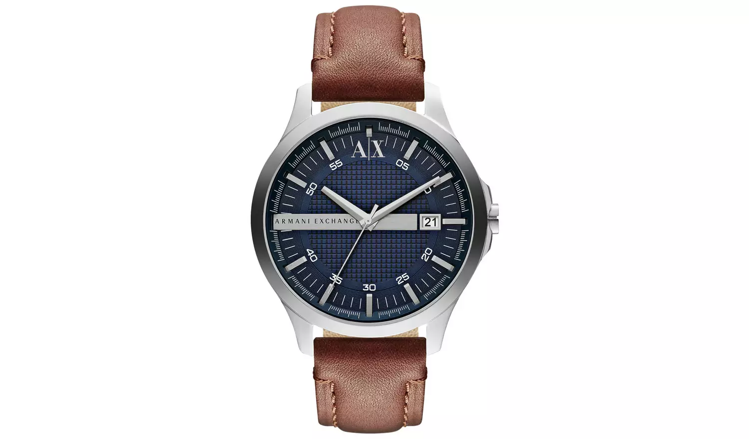 Featuring a rich brown leather strap and navy blue dial this smart looking Armani Exchange watch sets the standard in classic style.