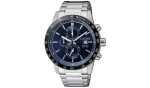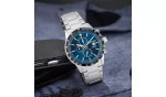 This Quartz men’s Chronograph watch from Citizen features a stainless steel bracelet and case, a blue dial with stopwatch functionality, date window, luminous hour and minute hands and is water resistant to 100 metres.