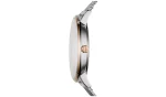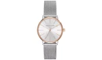 A stunning watch from Armani Exchange. The dial has minimal features making it look clean and modern. It gives you polished rose gold-tone indexes and a rose-gold tone top ring accent on the silver sunray dial of this sleek ladies’ watch. It’s finished with a polished silver-tone mesh bracelet that will sit beautifully on your wrist.